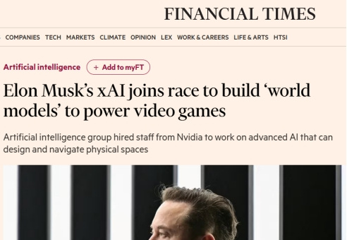 【环球网科技综合报道】近日,科技界在人工智能领域又掀起一阵热潮,特斯拉CEO埃隆·马斯克旗下的xAI公司正全力投入“世界模型”的研发,与Meta、谷歌等科技巨头一同在这场激烈的竞赛中角逐。